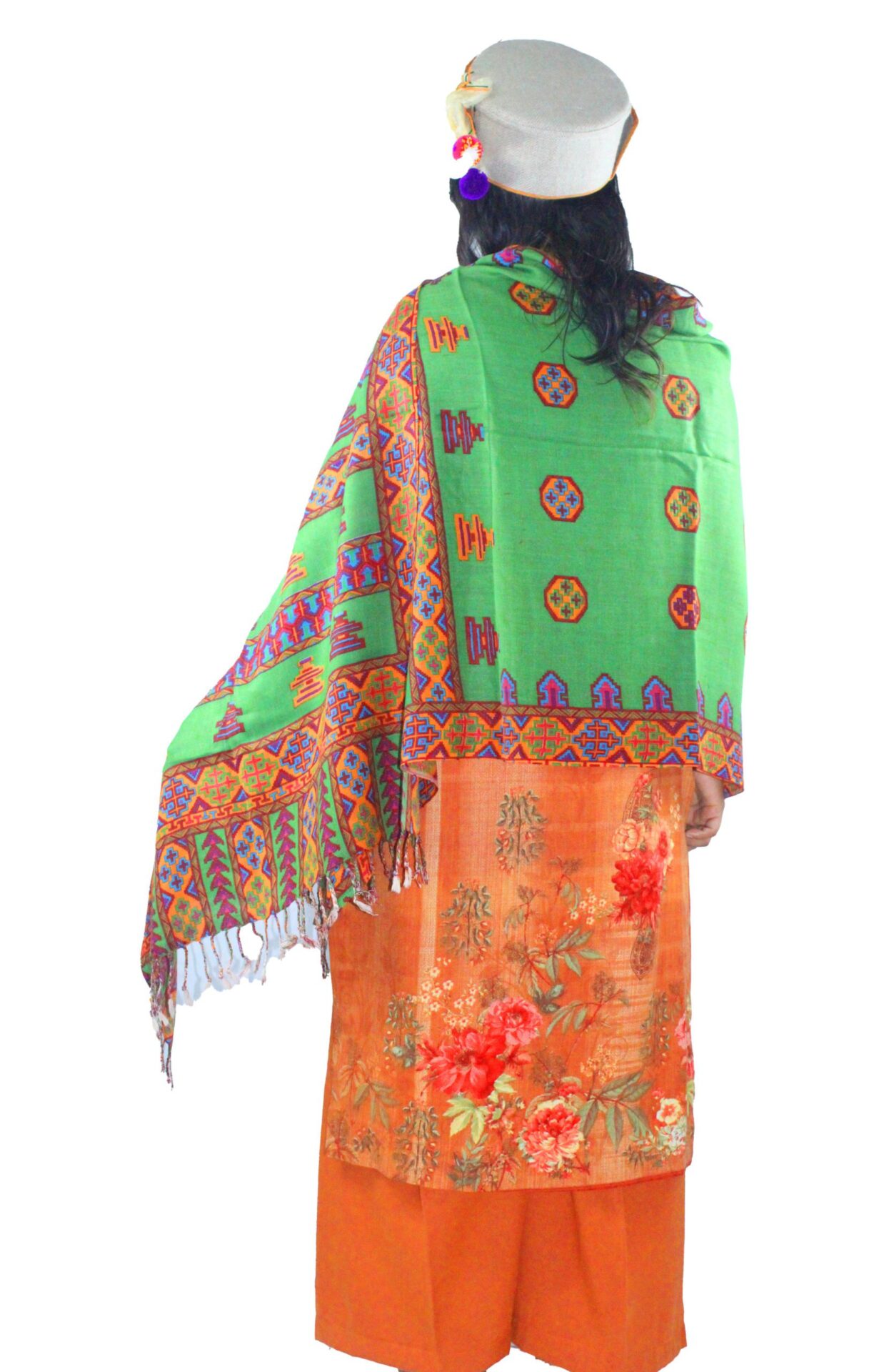 PURE WOOL STOLE WITH BEAUTIFUL KULLU KINNAURI PRINTED DESIGN green