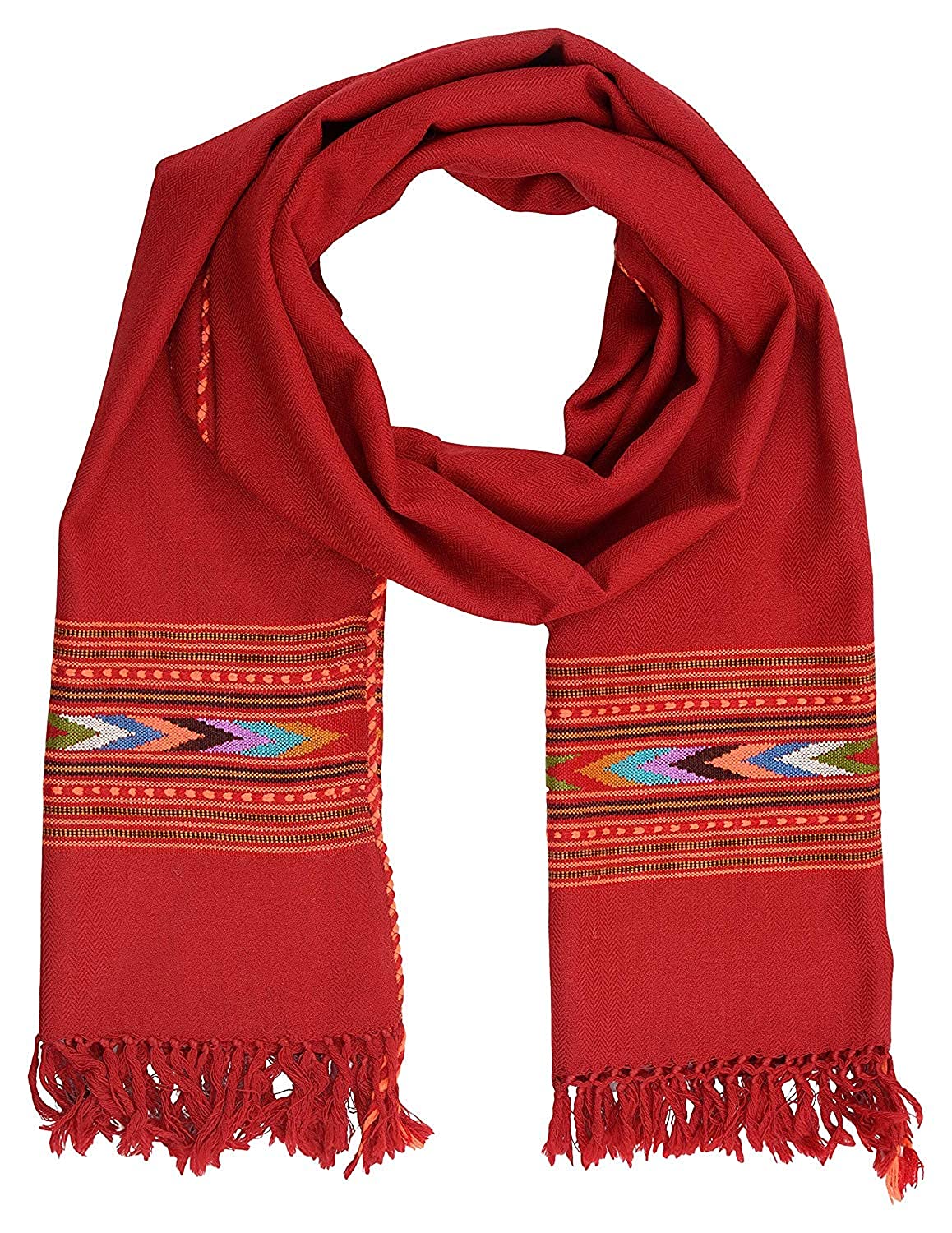 Women’s Hand Woven, Woolen Stole with Kullu Typical Weaving on Handloom MAROON