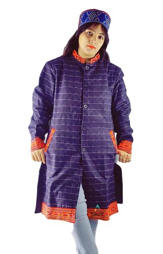 himachali Long Jacket jacket for ladies FULL SLEEVES blue check