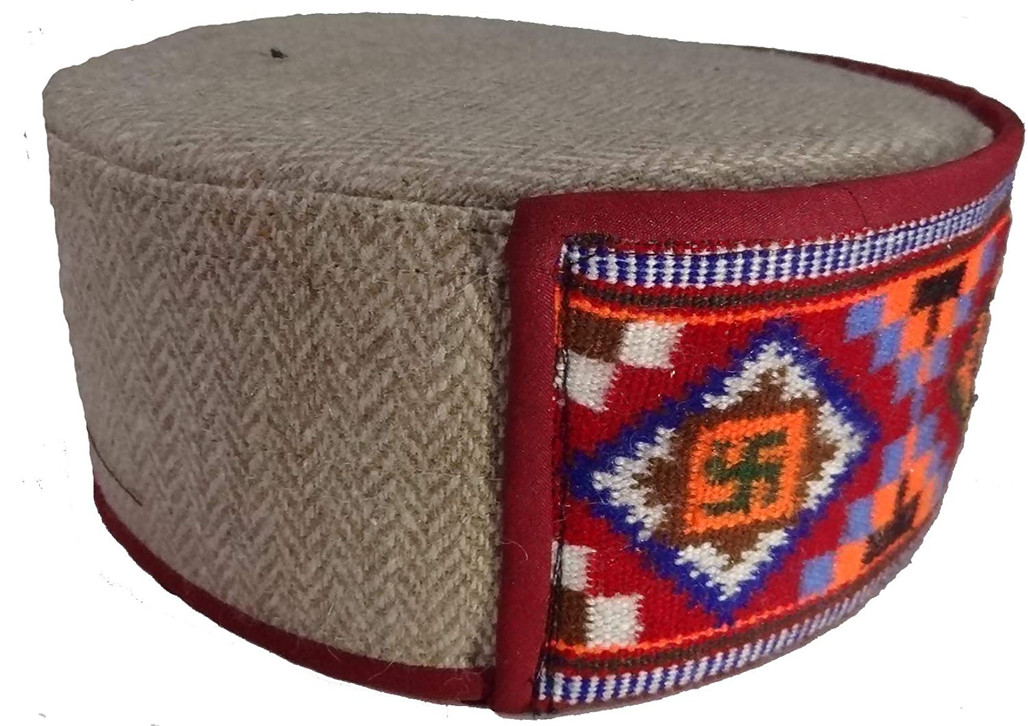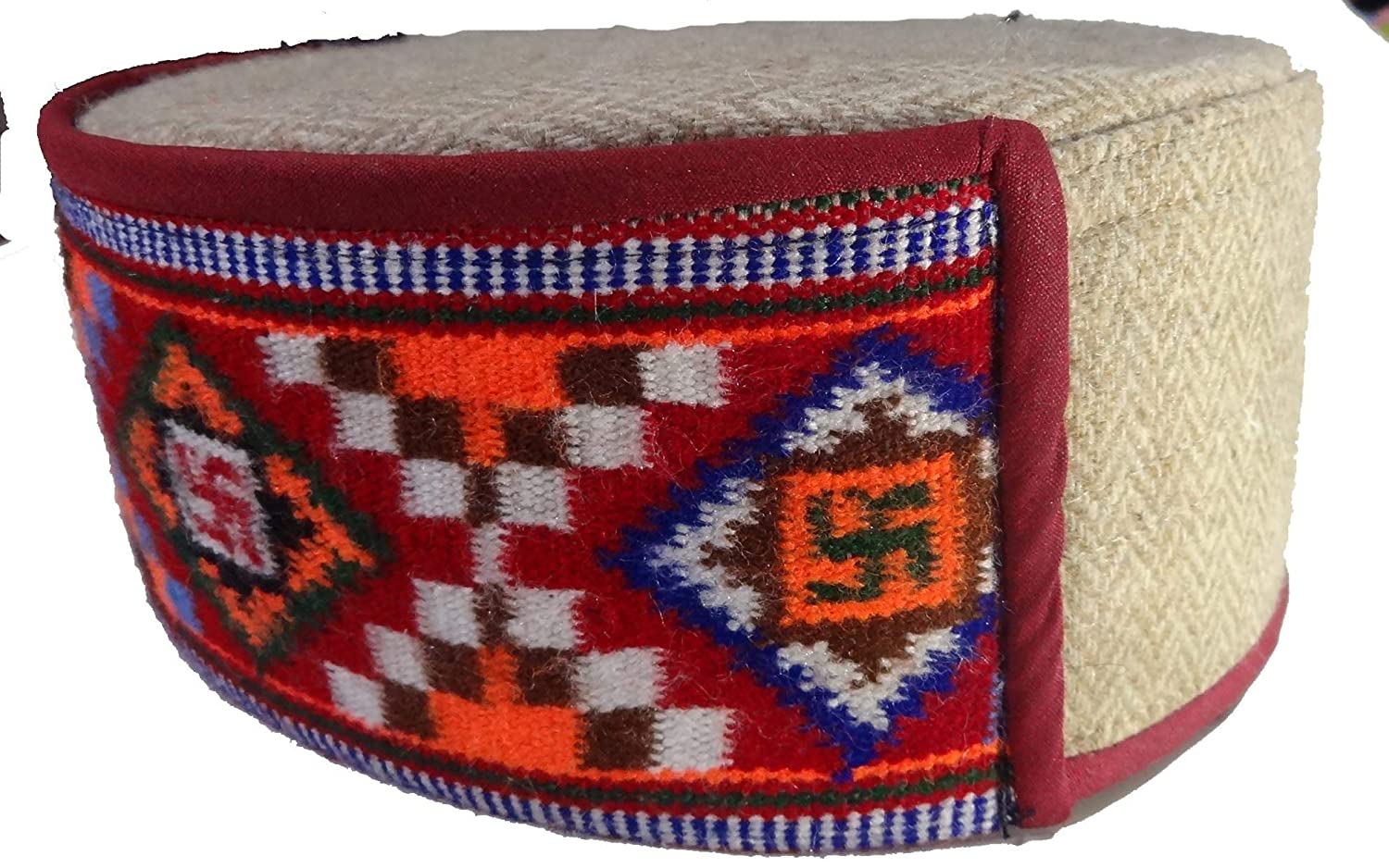Unisex (Pahari Cap,himachali topi Fusion Cap) FINE SWASTIKA HANDMADE KULLU BORDER CAP