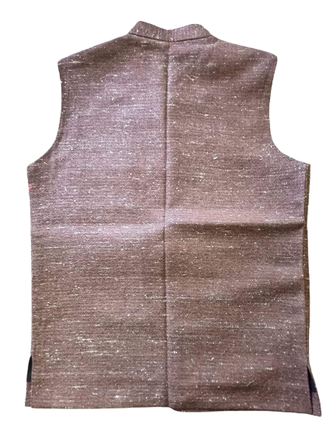 Men's Woolen Tweed Bandhgala Nehru Jacket PURE YAK WOOL BROWN